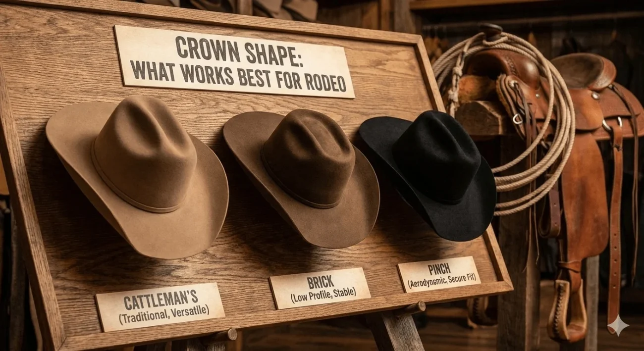 The crown is the top part of the hat. For rodeo competitions, structure matters.