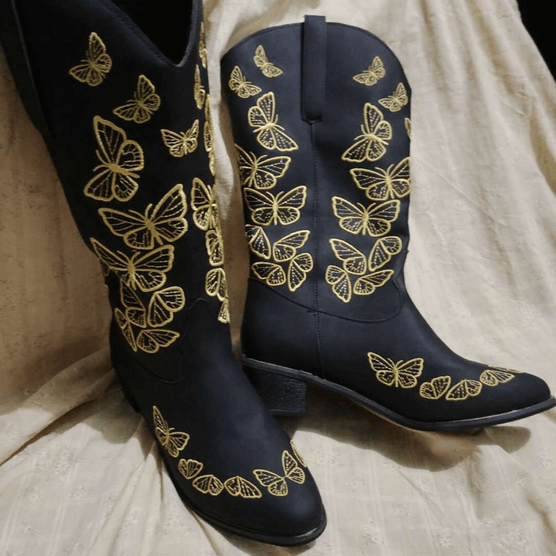 Unlike traditional plain leather styles, butterfly western boots feature embroidered or stitched butterfly designs along the shaft. These details add color, movement, and character. Whether subtle tone-on-tone stitching or bold multicolor embroidery, the butterfly motif transforms an everyday boot into a statement piece.